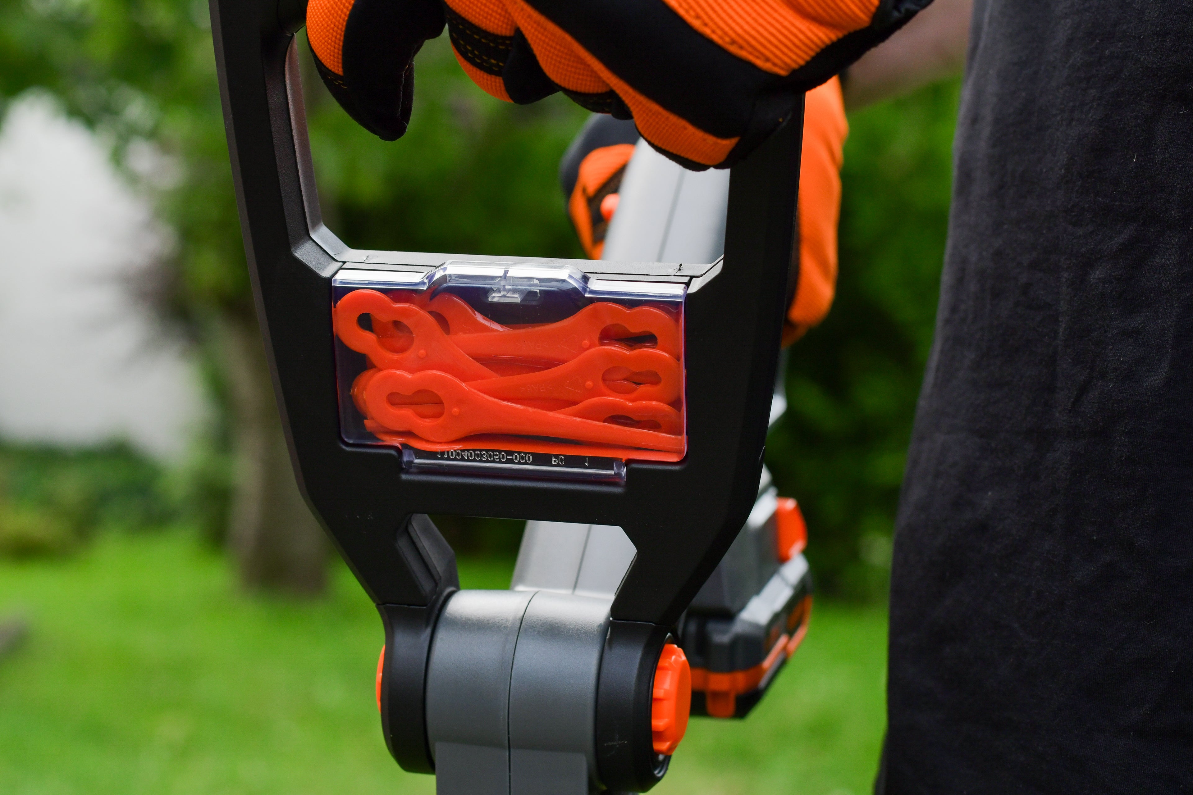 - Vorderer Handgriff mit extra Fach für Ersatzklingen (20 Ersatzklingen sind enthalten)